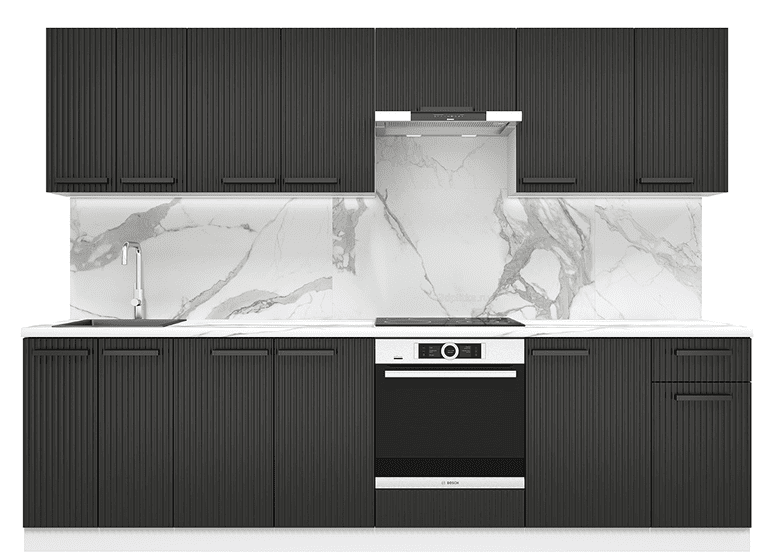 Шкаф кухонный навесной в черном цвете с рифленым фасадом. Собственное производство. Все детали для сборки в комплекте. Поставляется в разобранном виде.