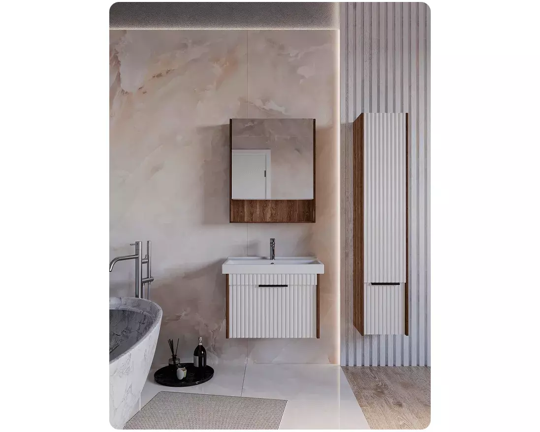 Основание для установки опоры под раковину в ванной комнате. Выполнен из прочной ДСП с влагоустойчивым покрытием. Декорирован под спил натуральной древесины. Органично впишется в современные интерьеры небольших помещений благодаря лаконичному дизайну и компактным габаритам. Раковина не идет в комплекте, ее нужно докупать отдельно.