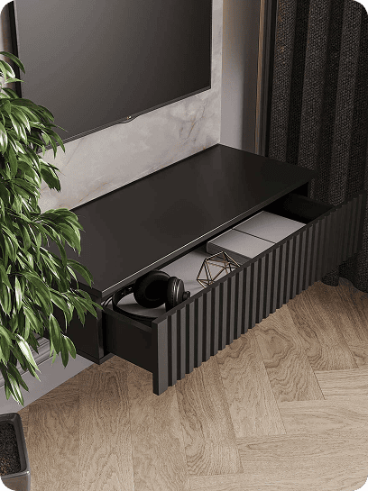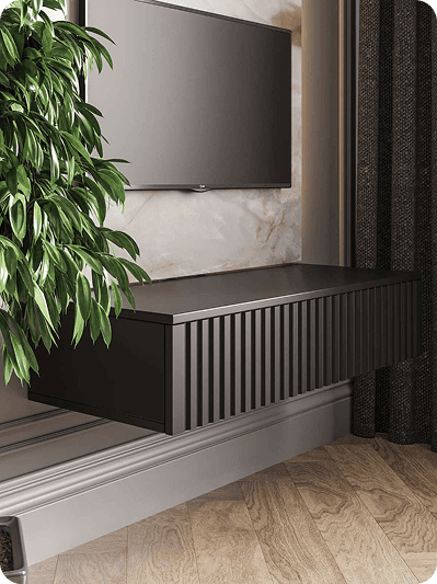 Тумба навесная под телевизор в черном цвете. Рифленый фасад.