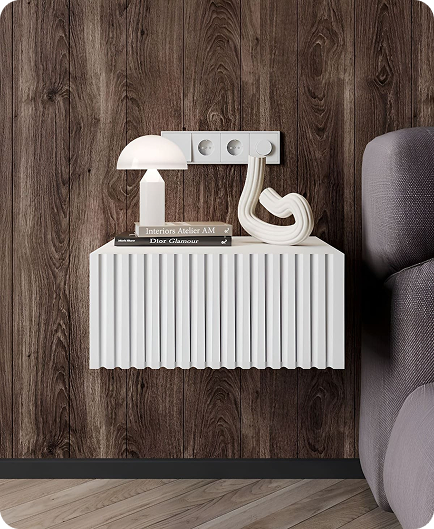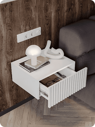 Используется в качестве прикроватной мебели, размещенной на стенах для эффективного хранения предметов первой необходимости. Также гармонично будет сочетаться наша мебель в коридоре, гостиной, офисе, в кабинете.